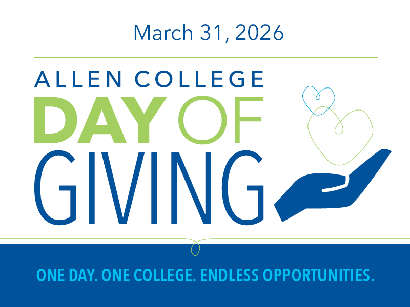 Join alumni and friends on March 31, 2026, for the Allen College Day of Giving to support the IMPACT Fund. Your gift strengthens programs, enhances student experiences, and helps Allen College remain innovative - opening doors for students today and for generations to come.
